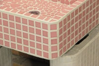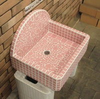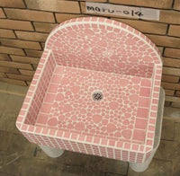モルタル下地にモザイクタイルを張ったタイル流し台。