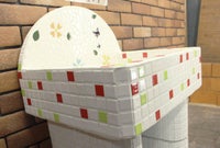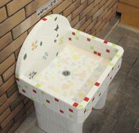 モルタル下地にモザイクタイルを張ったタイル流し台。