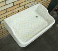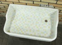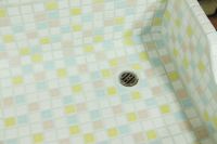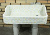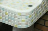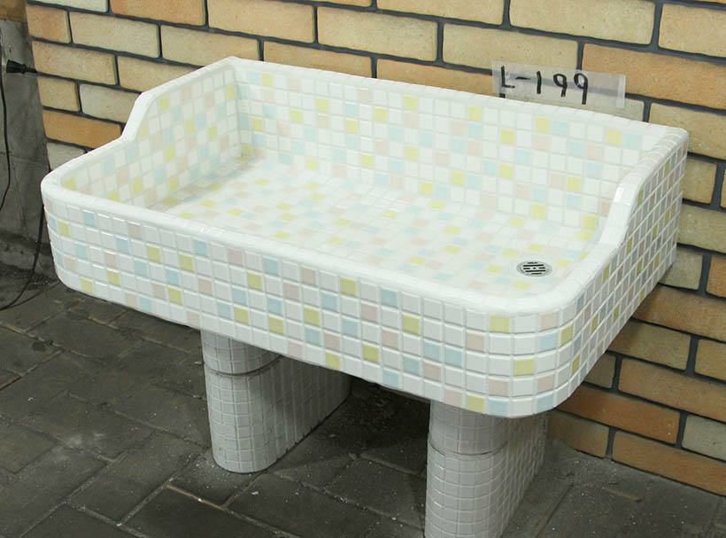 モルタル下地にモザイクタイルを張ったタイル流し台。