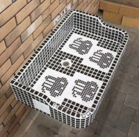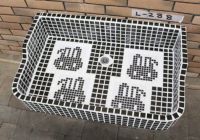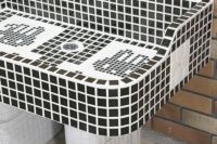 モルタル下地にモザイクタイルを張ったタイル流し台。