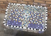 ガーデンシンク タイル 流し台 昭和レトロ モザイクタイル張り Lサイズ-312 手作りガーデンシンク タイル流し台 エクステリア お洒落