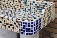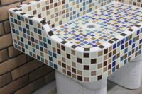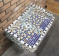 モルタル下地にモザイクタイルを張ったタイル流し台。