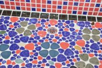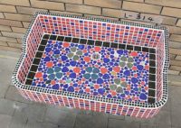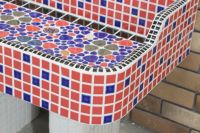 モルタル下地にモザイクタイルを張ったタイル流し台。