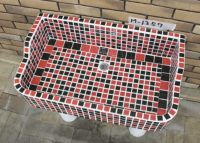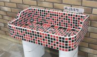 モルタル下地にモザイクタイルを張ったタイル流し台。 すべて職人が丹精を込めて製作している1点ものです。 潮風があたる場所や、気候条件が悪い外部でのご使用にも向いています。 手作りのためタイル目地は多少貫乳が入っております。 重たいので移動や設置は注意して行って下さい。 運搬は細心の注意をはらっておりますが、運送等で割れた場合は代品をお送りいたします。 その際は受注生産となりますので、一ヶ月程お時間をいただく場合がございます。 またすべて手作りのため、全く同じもののご用意はいたしかねますのでご了承ください。