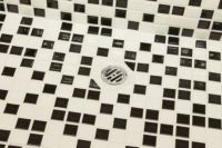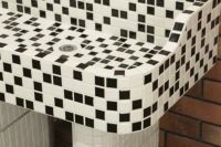 モルタル下地にモザイクタイルを張ったタイル流し台。