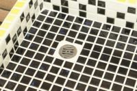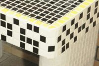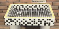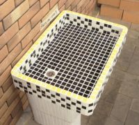 モルタル下地にモザイクタイルを張ったタイル流し台。