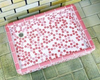 モルタル下地にモザイクタイルを張ったタイル流し台。