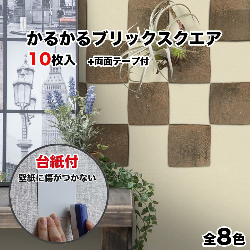 軽量レンガ タイル かるかるブリック スクエア 10枚入 両面テープ付 台紙付