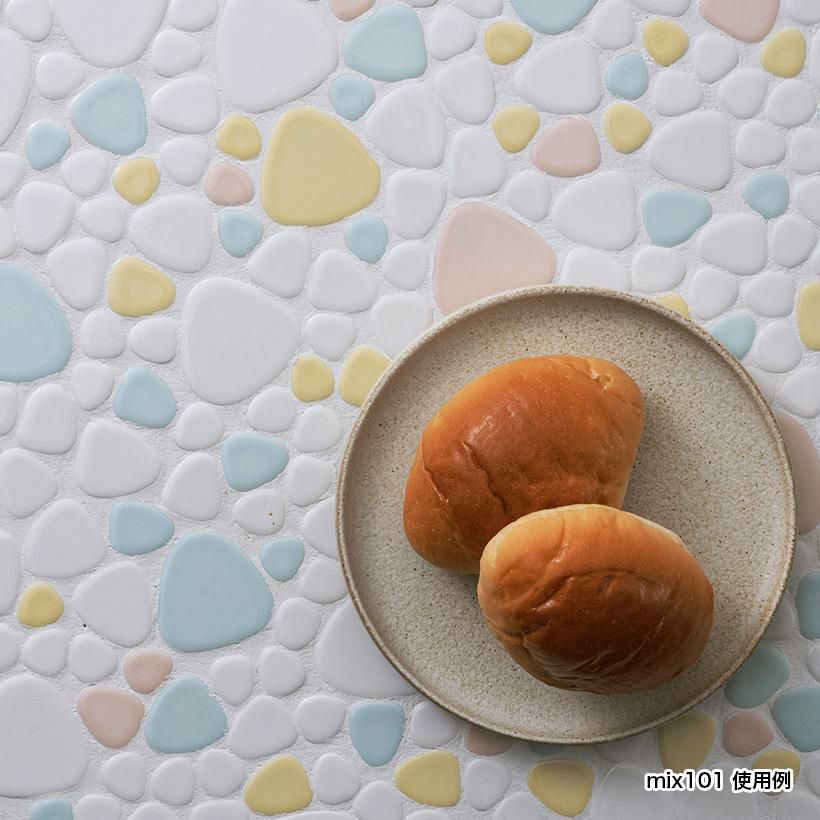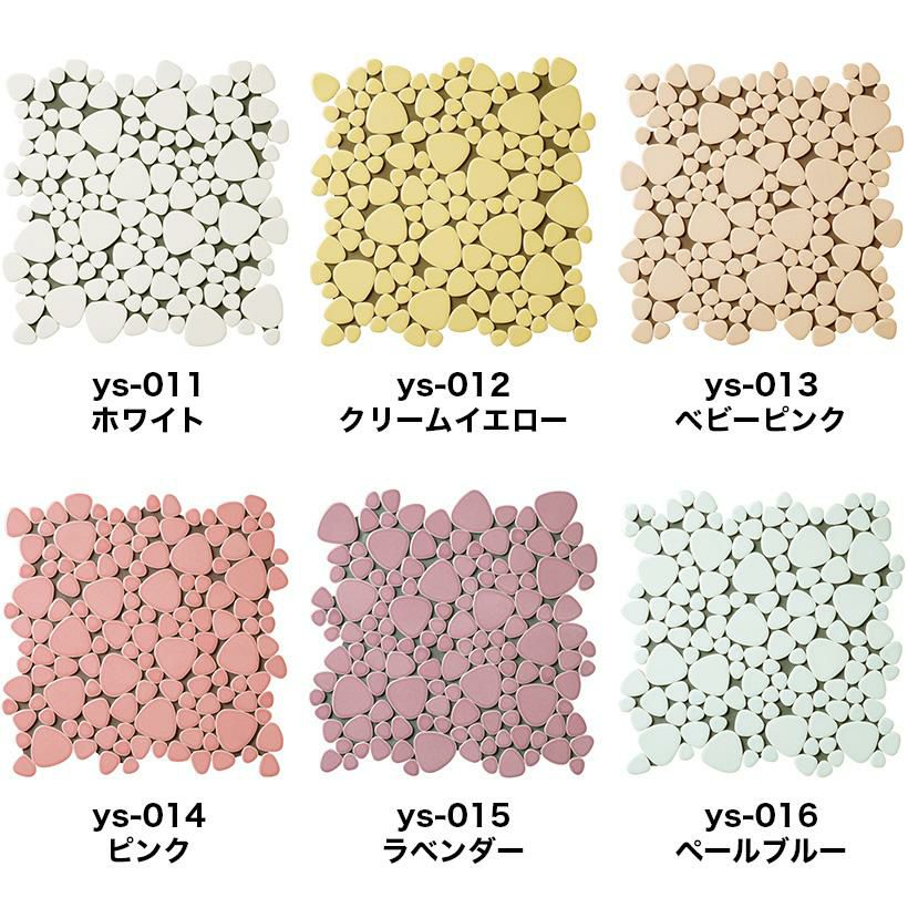 単色や模様入り、グラデーションなど、さまざまな色やデザインがあるため、装飾用として使われることが多いタイルです。