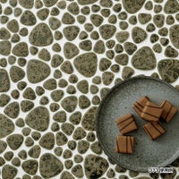 目地の広いところは、接着剤が硬くなる前にタイルをずらしてバランスよく目地を調整する。 |
