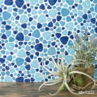 目地の広いところは、接着剤が硬くなる前にタイルをずらしてバランスよく目地を調整する。 |