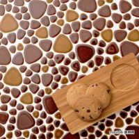 目地の広いところは、接着剤が硬くなる前にタイルをずらしてバランスよく目地を調整する。 |
