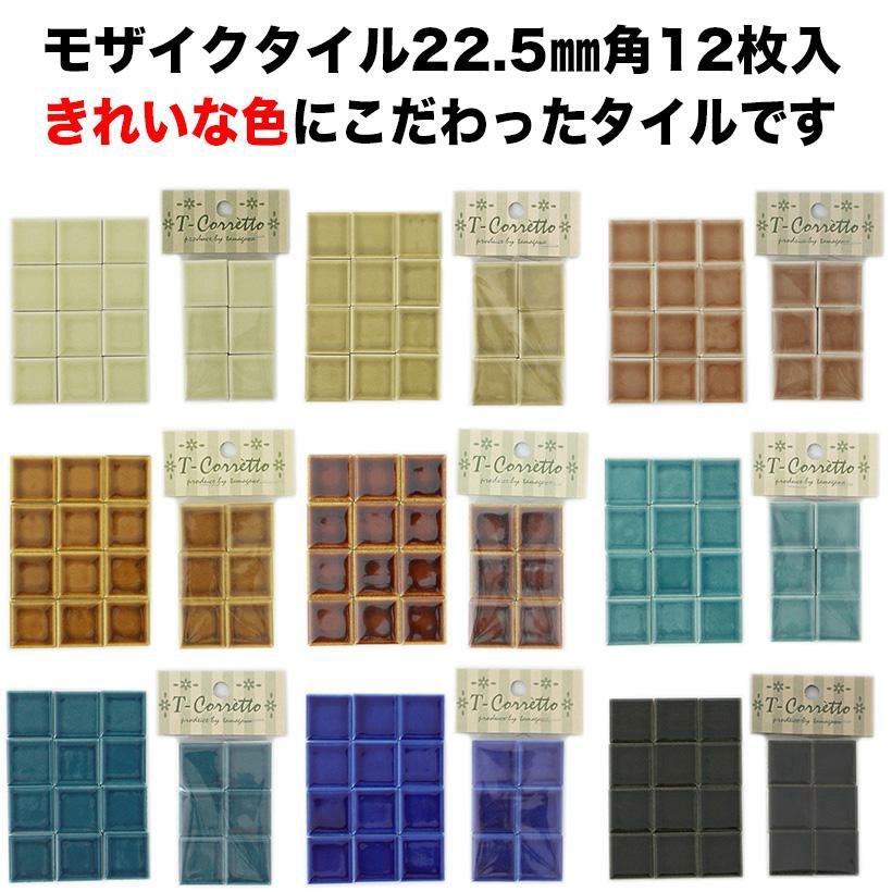 モザイクタイル ETM-22.5mm角 小袋入り レトロ色 全9色 バラ石 12個入 白がきれいで表面の発色がとてもきれいです 可愛い モザイクタイル