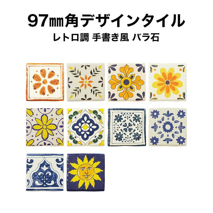 97mm角デザインタイル 手描きレトロ調 |