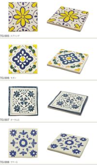 1250度で焼成したタイルに転写紙を張り800度で焼成した柄タイルです。