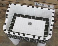 モルタル下地にモザイクタイルを張ったタイル流し台。 すべて職人が丹精を込めて製作している1点ものです。 潮風があたる場所や、気候条件が悪い外部でのご使用にも向いています。 手作りのためタイル目地は多少貫乳が入っております。 重たいので移動や設置は注意して行って下さい。 運搬は細心の注意をはらっておりますが、運送等で割れた場合は代品をお送りいたします。 その際は受注生産となりますので、一ヶ月程お時間をいただく場合がございます。 またすべて手作りのため、全く同じもののご用意はいたしかねますのでご了承ください。