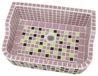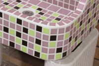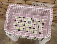 モルタル下地にモザイクタイルを張ったタイル流し台。