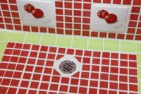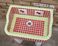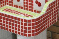 モルタル下地にモザイクタイルを張ったタイル流し台。