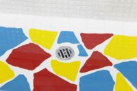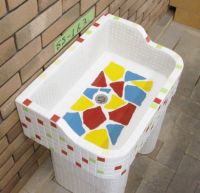 モルタル下地にモザイクタイルを張ったタイル流し台。