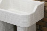 モルタル下地にモザイクタイルを張ったタイル流し台。