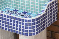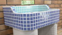 モルタル下地にモザイクタイルを張ったタイル流し台。