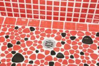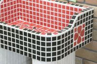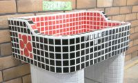 モルタル下地にモザイクタイルを張ったタイル流し台。