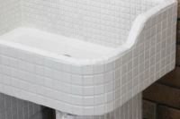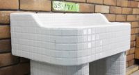 モルタル下地にモザイクタイルを張ったタイル流し台。