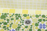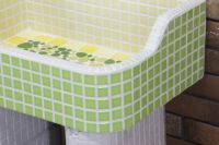 モルタル下地にモザイクタイルを張ったタイル流し台。