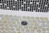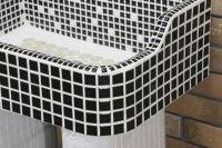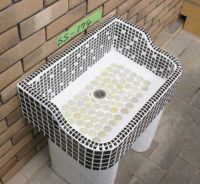 モルタル下地にモザイクタイルを張ったタイル流し台。
