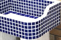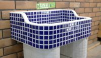 モルタル下地にモザイクタイルを張ったタイル流し台。