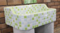 モルタル下地にモザイクタイルを張ったタイル流し台。