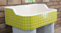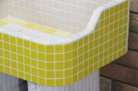 モルタル下地にモザイクタイルを張ったタイル流し台。