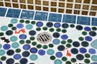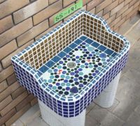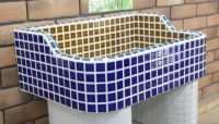 モルタル下地にモザイクタイルを張ったタイル流し台。