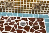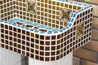 モルタル下地にモザイクタイルを張ったタイル流し台。
