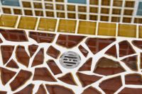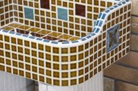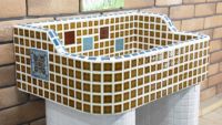 モルタル下地にモザイクタイルを張ったタイル流し台。