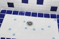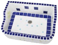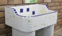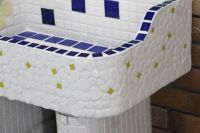 モルタル下地にモザイクタイルを張ったタイル流し台。