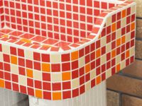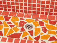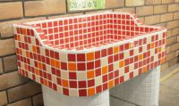 モルタル下地にモザイクタイルを張ったタイル流し台。