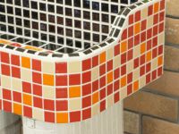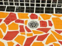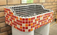 モルタル下地にモザイクタイルを張ったタイル流し台。