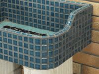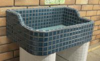 モルタル下地にモザイクタイルを張ったタイル流し台。