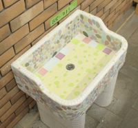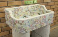 モルタル下地にモザイクタイルを張ったタイル流し台。