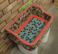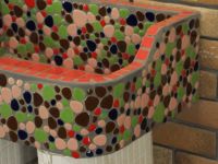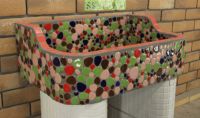 モルタル下地にモザイクタイルを張ったタイル流し台。