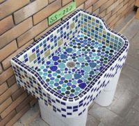 モルタル下地にモザイクタイルを張ったタイル流し台。