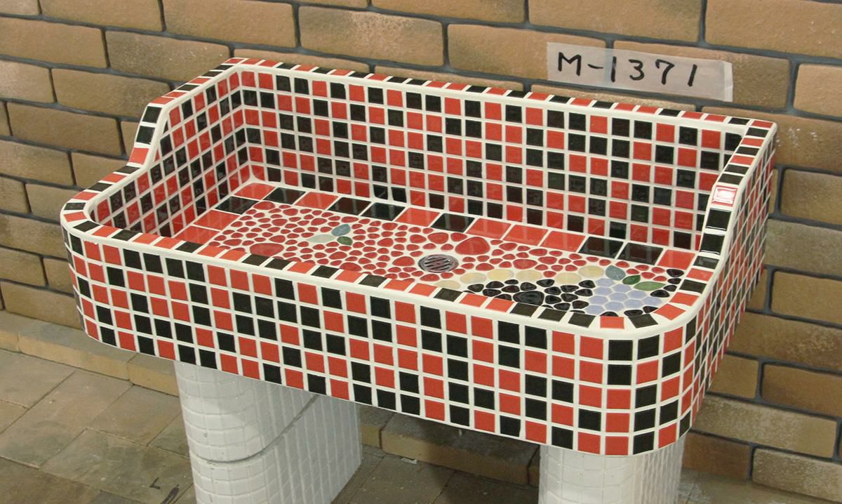 モルタル下地にモザイクタイルを張ったタイル流し台。 すべて職人が丹精を込めて製作している1点ものです。 潮風があたる場所や、気候条件が悪い外部でのご使用にも向いています。 手作りのためタイル目地は多少貫乳が入っております。 重たいので移動や設置は注意して行って下さい。 運搬は細心の注意をはらっておりますが、運送等で割れた場合は代品をお送りいたします。 その際は受注生産となりますので、一ヶ月程お時間をいただく場合がございます。 またすべて手作りのため、全く同じもののご用意はいたしかねますのでご了承ください。