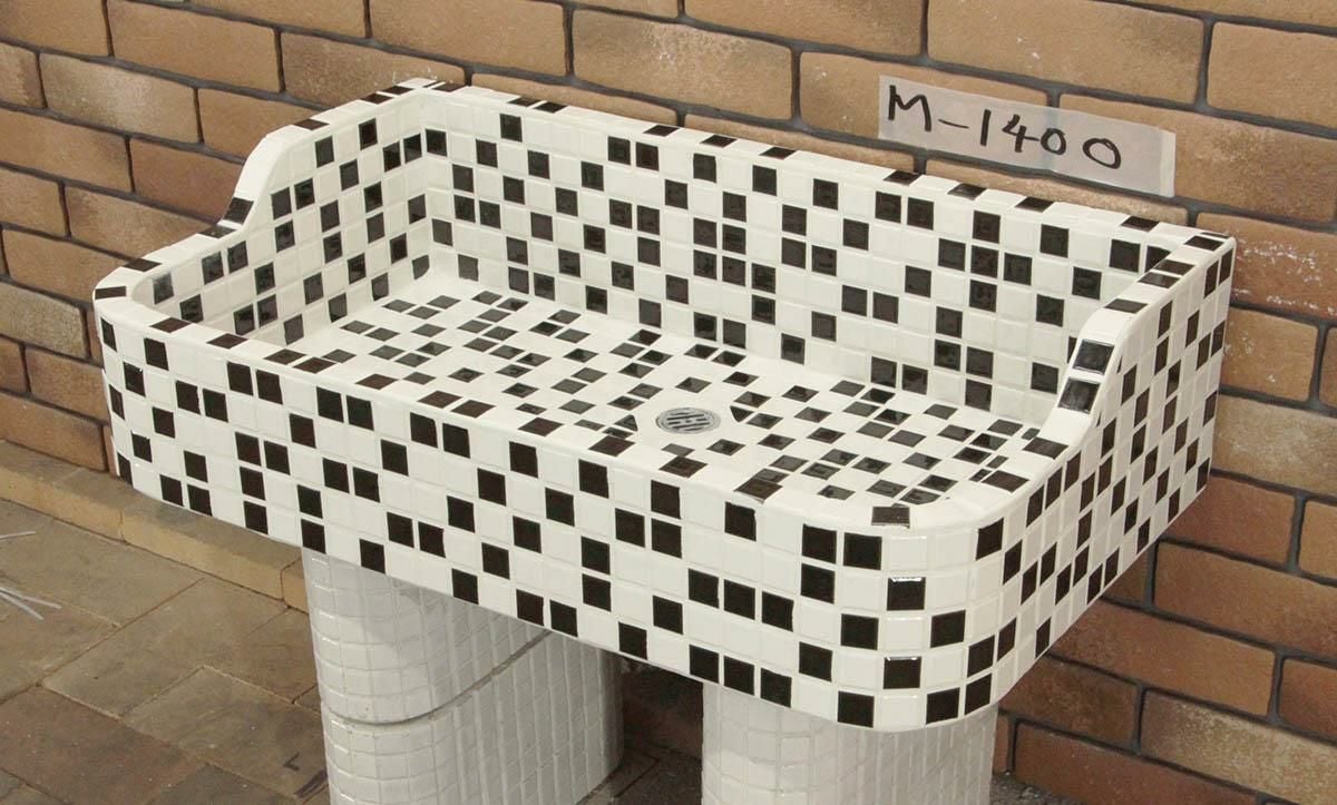 ガーデンシンク タイル 流し台 昭和レトロ モザイクタイル張り MサイズM-1400 手作りガーデンシンク タイル流し台 エクステリア お洒落 老人ホームなどにも大好評です