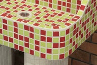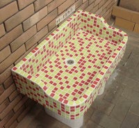 モルタル下地にモザイクタイルを張ったタイル流し台。