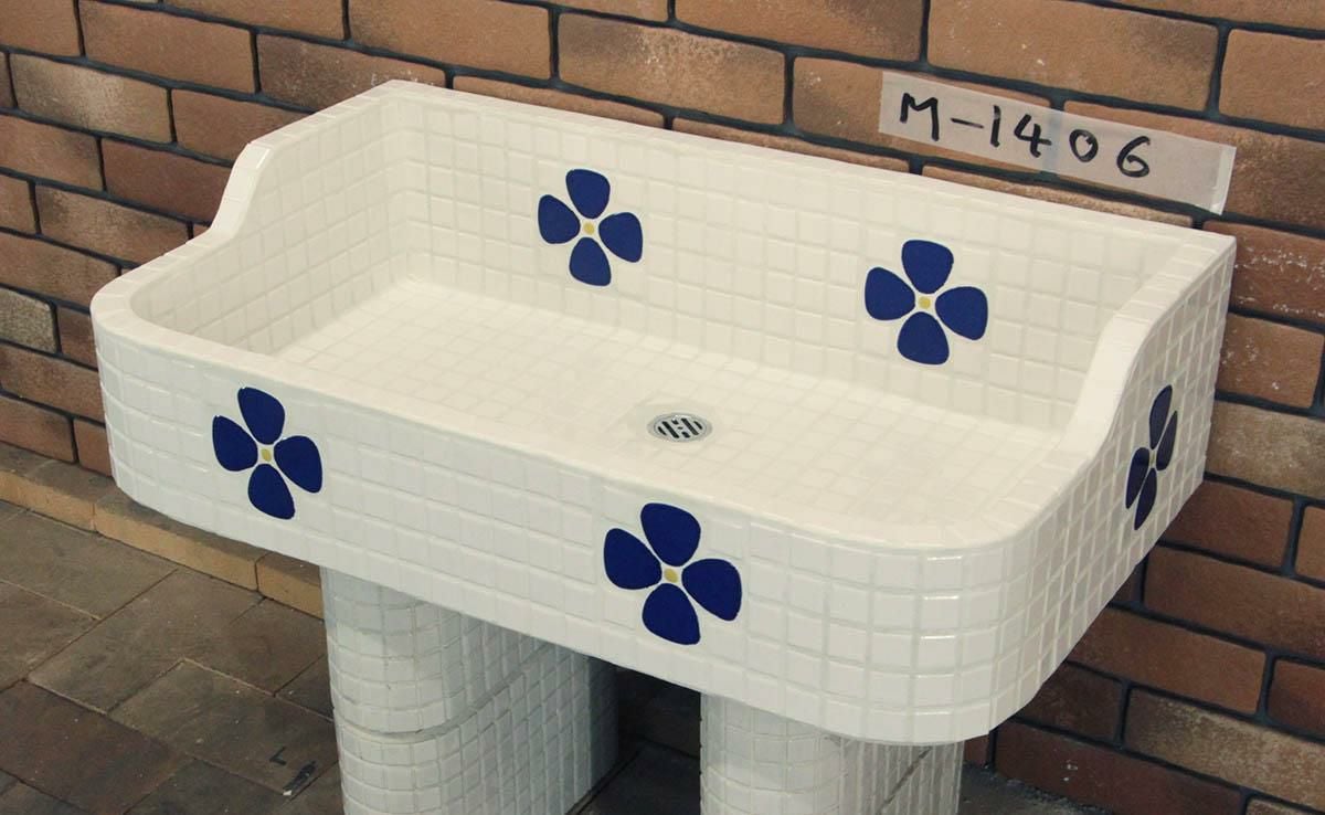 ガーデンシンク タイル 流し台 昭和レトロ モザイクタイル張り MサイズM-1406 手作りガーデンシンク タイル流し台 エクステリア お洒落 老人ホームなどにも大好評です