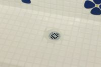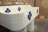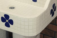 モルタル下地にモザイクタイルを張ったタイル流し台。