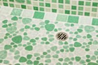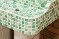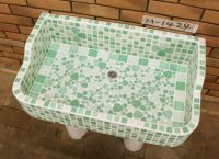 モルタル下地にモザイクタイルを張ったタイル流し台。