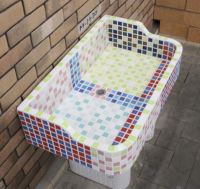 モルタル下地にモザイクタイルを張ったタイル流し台。