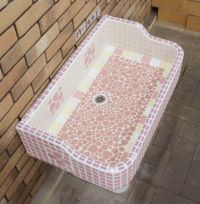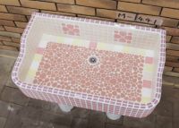モルタル下地にモザイクタイルを張ったタイル流し台。